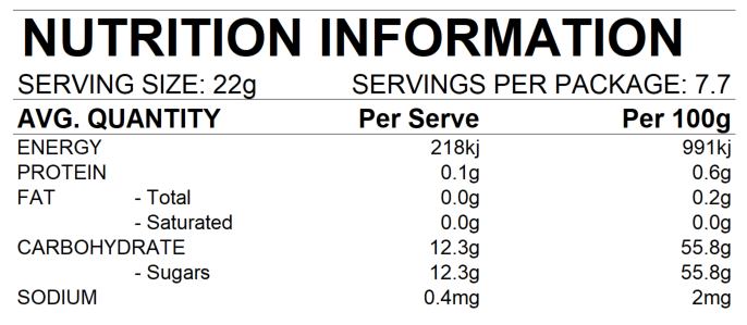 No artificial flavours or colours • Cholesterol free • Vegan • Dairy free • GMO free • 100% Australian family owned